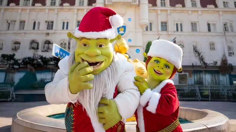 USSパーク内ではクリスマス期間中、クリスマス仕様に着飾ったシュレックやフィオナ姫、ミニオンズに出会えます!この機会に彼らと一緒にポーズを撮ってクリスマスらしい写真を撮影しよう!