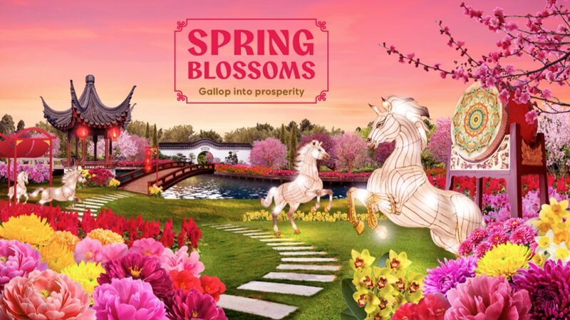 今年のガーデンズ バイ ザ ベイの旧正月フラワーディスプレイは、午年にちなんだ「Spring Blossoms: Gallop into Prosperity」。中国文化の象徴的な花々に加え、ランタンの馬や古典的な中国建築を楽しめます。