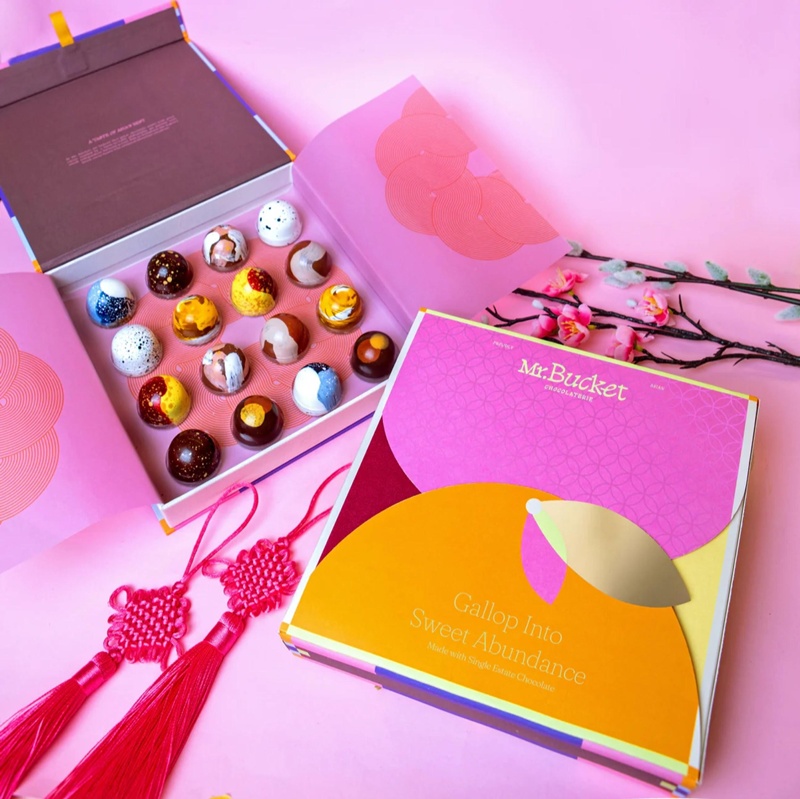 こちらはお正月限定フレーバー3種を詰め合わせた16粒入りボンボン、Huat Chocolate Bonbon(S$58)。新フレーバーの中でもユニークなのはプロウンロールのピリッとした味わいのチョコレート!愛に幸運と豊かさを加えた特別なセット。バレンタインの贈り物にもぴったり。