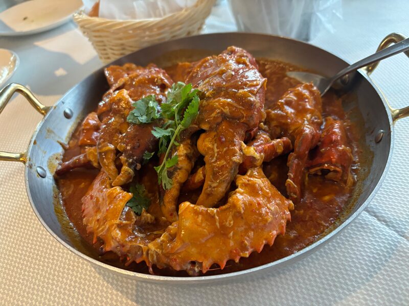チリ、トマト、卵で作られたとろみのあるソースに、カニを丸ごと煮て調理されるシンガポールの名物ローカル料理、チリクラブ。まろやかな辛みなので誰でも食べやすく、観光客にも人気の一品です。