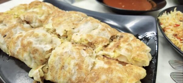 サルタンモスクのすぐ側にあるZAM ZAM Restaurantはイスラム料理のお店です。こちらのお店の名物であるムルタバは、イスラム風お好み焼きのようなもの。お店ではムルタバを生地から作る様子も見ることができます。