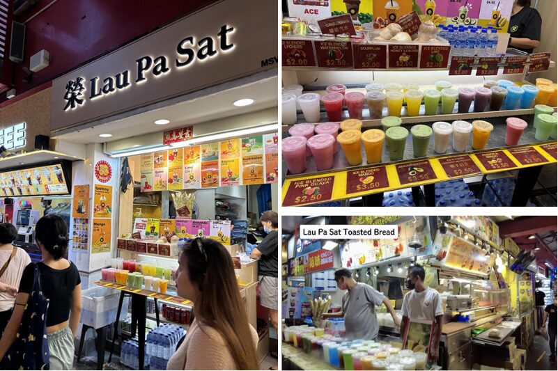 ここでは、タイのグリーンカレーやトムヤムスープ、四川風のピリ辛中華料理、アラブ風のグリルチキンなど、多国籍の料理が一堂に並びます。フレッシュなマンゴージュースやアイスドリンクも揃っており、蒸し暑いシンガポールでリフレッシュするのにぴったりです。