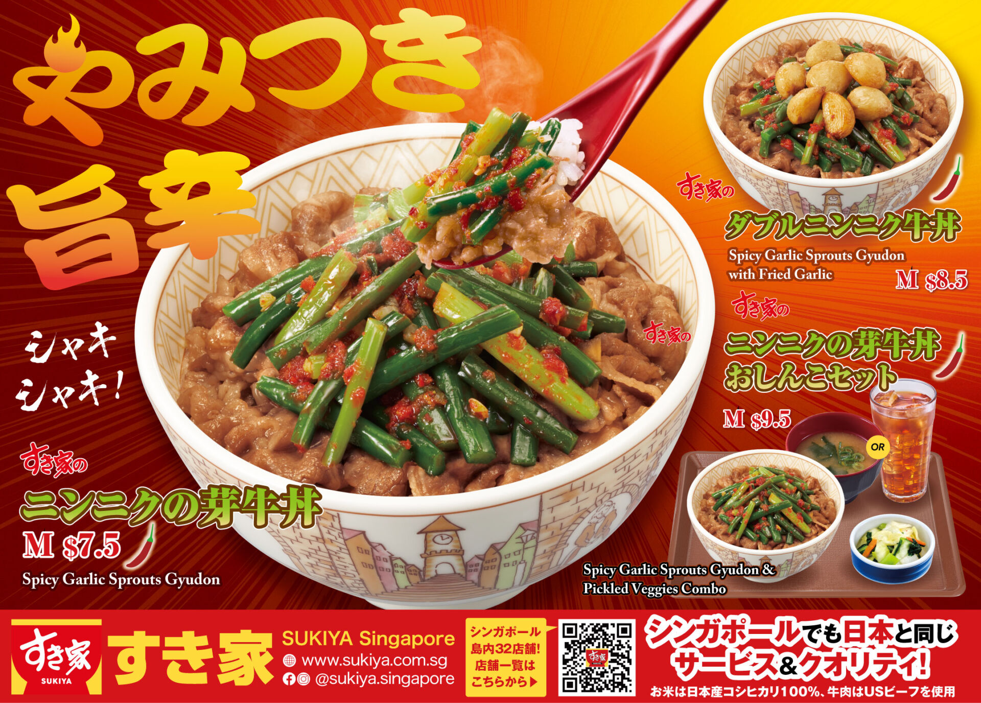 メニューの内容は、シンガポールで人気のメニューについてリサーチし、日本とシンガポールの両方の会社で試作をして決定されています。過去には日本の店舗の人気メニュー、ビビンバ牛丼、にんにくの芽牛丼、おろしポン酢牛丼などが登場しています。ぜひ、店舗に足を運ぶ際は新しいメニューをチェックしてみてください!