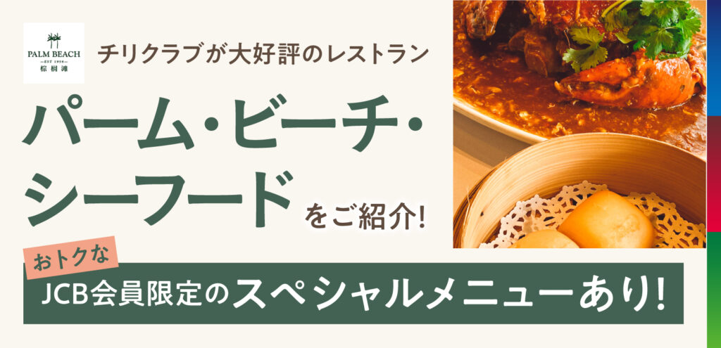 シンガポールの人気エリアにある有名レストラン、パーム・ビーチ・シーフード(Palm Beach Seafood)でJCBカード会員様へ期間限定の優待特典が登場し、期間中はJCBカードの提示で会員様限定のスペシャルメニューが楽しめます。本記事では気になる優待の内容について紹介します。