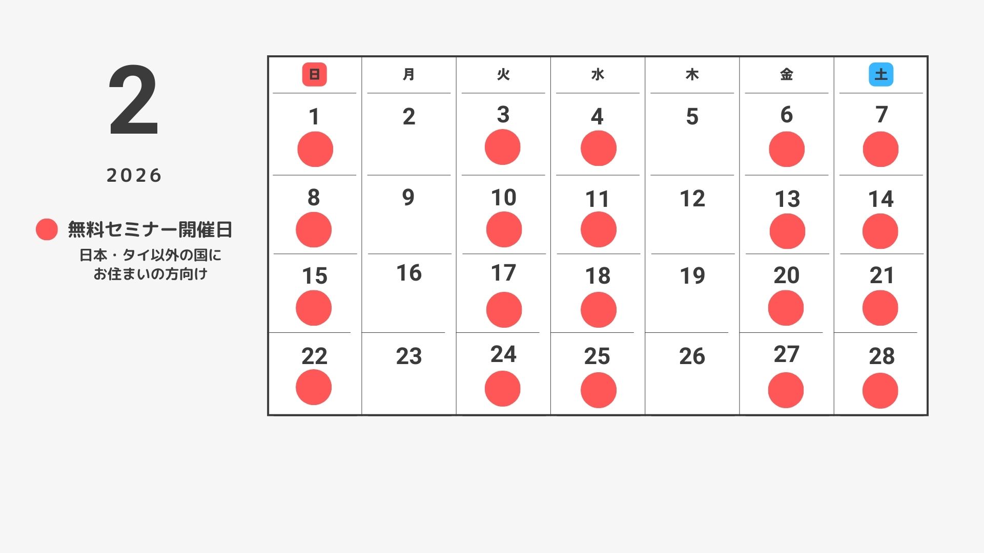 2026年度講座向け無料セミナーの日程は、公式WEBサイトでご確認ください。