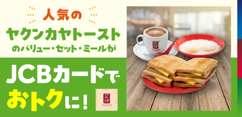 人気のヤクンカヤトーストの「バリュー・セット・ミール」の飲み物が、JCBカードで無料アップグレード!